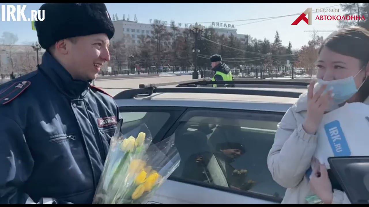 ГИБДД и ГК "Первая автоколонна" поздравили иркутянок с 8 Марта