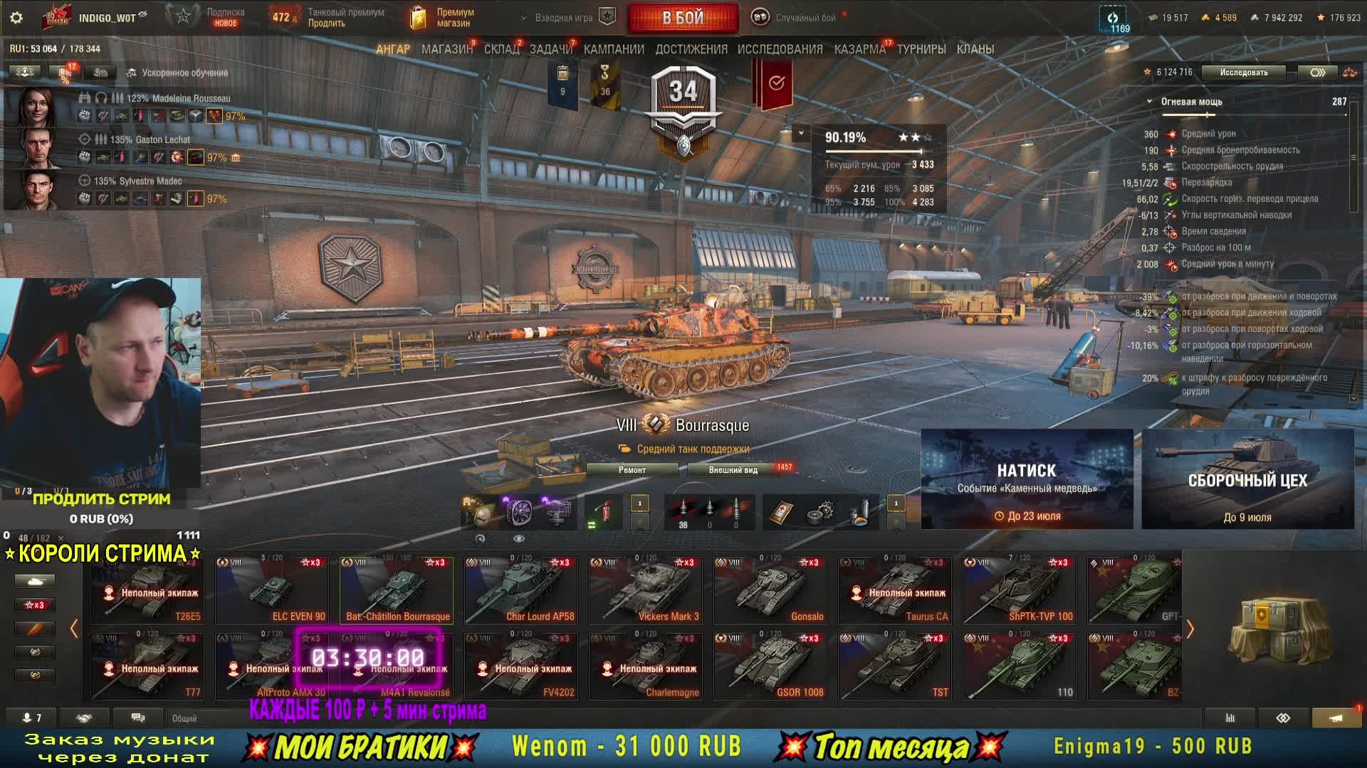 Натиск «КАМЕННЫЙ МЕДВЕДЬ» + Рандом | Донат продлевает стрим ⏩⏩⏩ РОЗЫГРЫШ ЗОЛОТА и Вся инфа про стримы здесь - https://t.me/indigo_wot 💲💲💲 Донат - https://www.donationalerts.com/r/indigo_wot Правила: 1. Каждые 100 руб. + 5 мин к времени стрима! (добавляются автоматически) 2. Если стрим продлен более чем на 3 часа, то стример может изменить стоимость либо количество минут на свое всмотрение! 3. Стрим будет идти до того времени пока не завершится отсчет таймера! (если придется, то лягу спать под вебкой). 4. В случае непредвиденных обстоятельств (отключение интерента, света и т.д.) стрим будет перезапущен при первой возможности. #миртанков #wot #indigowot В конце стрима разыграю 500 золота среди зрителей. Для участия необходимо: присутствовать на стриме и написать игровой ник Мира танков в чате когда я об этом скажу, быть подписанным на мой канал Ютуб @INDIGOWOT и на Телеграм канал https://t.me/indigo_wot Всем удачи) ❗❗❗ Мои соцсети: ✅ Трово: https://trovo.live/s/INDIGO_WOT ✅ Инстаграм https://instagram.com/indigo_wot?utm_medium=copy_link ✅ Помощь каналу в развитии https://www.donationalerts.com/r/indigo_wot ✅ Карта МИР - 2204 1201 1517 9810 ✅ Группа ВКонтакте https://vk.com/club85981909 ✅ Поддержать канал: https://www.donationalerts.com/r/indigo_wot ✅ Телеграм (информация о стримах и моей жизни) - https://t.me/indigo_wot ✅ VK Play: https://vkplay.live/indigo_wot ✅ Tik Tok: https://www.tiktok.com/@indigowot?is_from_webapp=1&sender_device=pc ✅ Rutube: https://rutube.ru/channel/10748927 Для поддержки - https://www.donationalerts.com/r/indigo_wot _______________________________________________ #стримwot #танкионлайн #indigowot