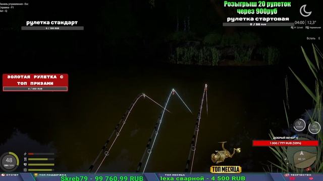 Поддержка донатом https://new.donatepay.ru/@1032463 Альтернативный донат https://www.donationalerts.com/r/kalyamba11 5536913964533059 карта Тинькоф Если стрим лагает,смотри стрим на трово https://trovo.live/s/Kalyamba_na_Ribalke Мой ВК - https://vk.com/kalyantv НИК в игре kalyan11 НАШ ДИСКОРД СЕРВЕР https://discord.gg/3ZeEDGs5h6 Заказ водоема на 1 час - 500р ( весь стрим 2500р ) Модерка на канале 1300р ( каждая следующая на 100р больше) Озвучка доната на 40р,50р,100р,200р,300р,500р,1000р ✅Призы в рулетке "ЗОЛОТАЯ" ✔ ЗОЛОТО ✔ ПРЕМ ✔ КАТУШКИ ЮБИЛЕЙНАЯ БОРЕЛИКА, ВЕНГИ, ТАЙГА, СИЛЬВЕР 80, И другие ✔ ПАЛКИ ПИЛКЕРНАЯ, ДОНКА МОРСКИЕ, ✔ РОД ПОД, СТУЛЬЯ ✅Призы в рулетке СТАНДАРТ : ✔ катушкИ ЮБИЛЕЙНАЯ БОРЕЛИКА, ВЕНГИ, ТАЙГА, СИЛЬВЕР 80, И другие ✔ катушки 60 для медного ( ЭВИИ, НАТОРЫ, ГОЛДА, и тд) ✔ ПИЛКЕРНОЕ УДИЛИЩЕ КОРОЛЕВА ОКЕАНА ✔ Морское Донное удилище ✔ прем ( 3, 7, 30 дней) ✔ золото ( 1, 3, 5, 10, 20 ,50) ✔ билет на море ( 1, 3, 5 дней) ✔ голд наживка и др. ✅Призы в рулетке "СТАРТОВАЯ" ✔ катушка "silver80" ✔ катушка "БЕЛЫЙ КАЛИБР" ✔ катушка "Черный калибр" ✔ катушка "Протон" ✔ катушка "Нарга 6000" ✔ Набор Фидерист и спинингист ✔ Карповик Фортуна ✔ фидерные удилища ✔ прем, золото, алкашка, наживки и тд P.s Рулетка это не казино, а награда за поддержку стримера. Вечный ТОП ПОДДЕРЖКИ (11.05.2024) 1. Dimon_pokemonchik 119 784 2. Interceptor 75 508 3. Skreb79 71 261 4. une personne 68 619 5. Нарвал77 31 550