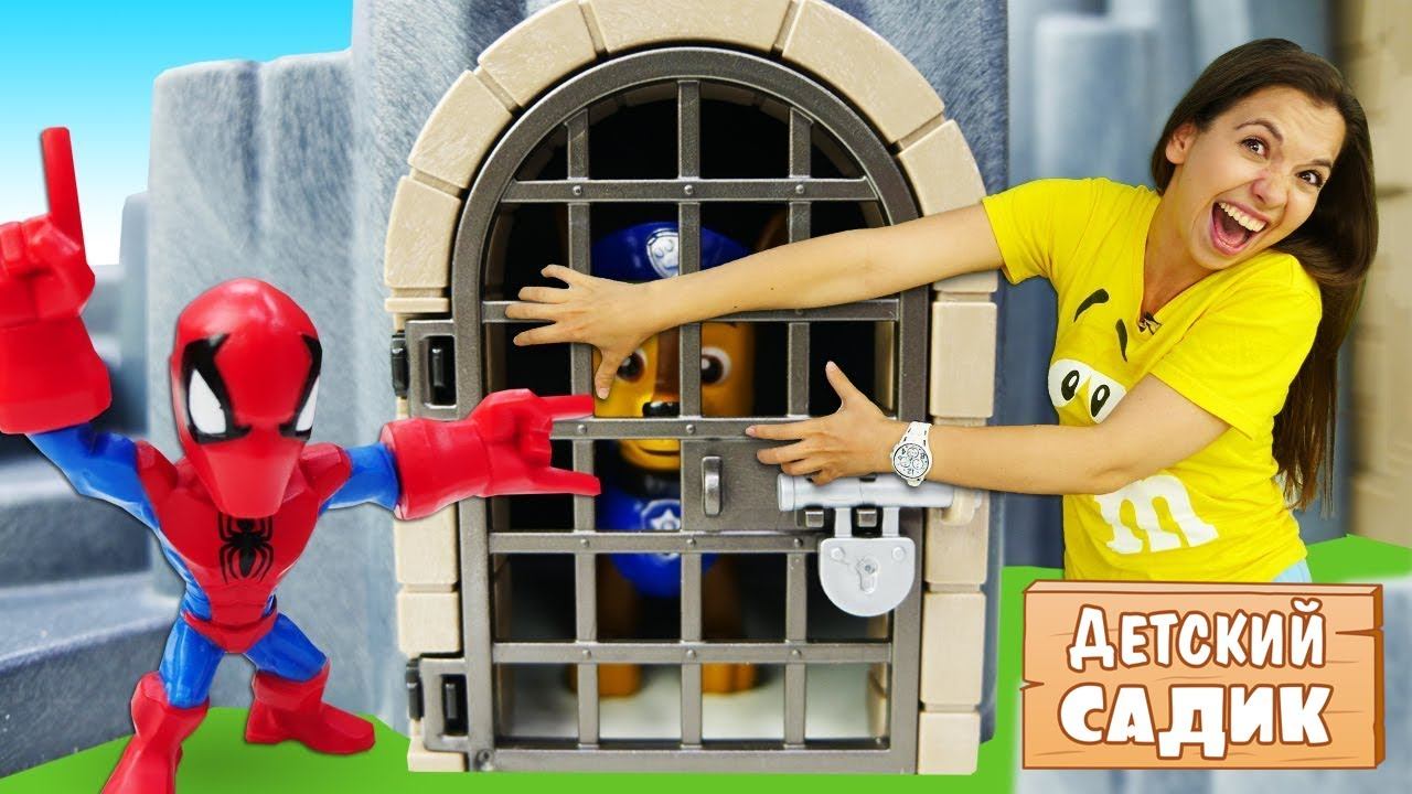 Мультик про Детский садик Капуки - Человек Паук спасает Гонщика (Щенячий патруль) - Видео для детей