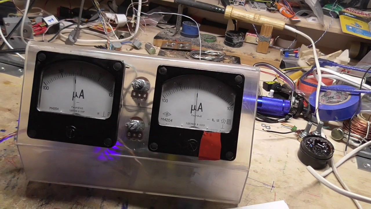 Прибор ИПИ (измерения патогенной активности) по техническому заданию В.А. Ацюковского. Блок и индикаторами и электронной схемой (без лазера). Проверка после сборки в корпус.