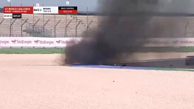 Lamborghini загорелся на гоночной трассе GT World Challenge Europe в Италии — вспыхнул топливный бак