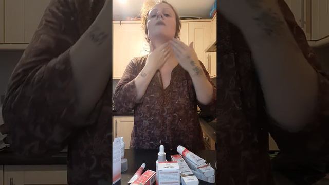 Demonstrating myself using the gentle skin prep range before my first time using the firming Pemegranate range of skincare products