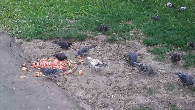 Голуби едят арбуз