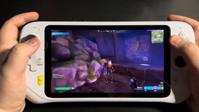 Playing Fortnite on Logitech G Cloud, Runway Racer gameplay.