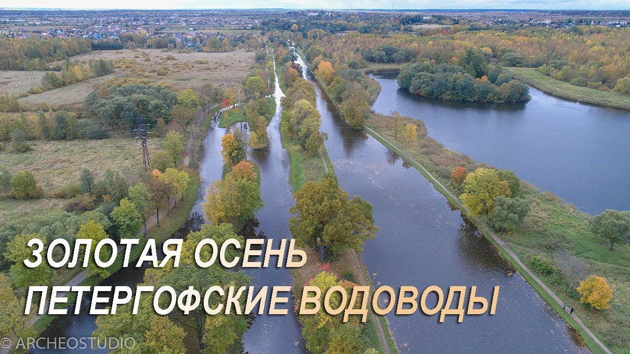 Петергофские водоводы (снабжающие фонтаны). Золотая осень в Петергофе. Аэросъемка