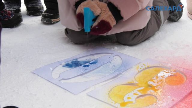 Цветная открытка на снегу В детском саду «Синяя птица» прошла акция «Рисуем на снегу». Организатор – Центр досуга «Притяжение». Малыши создали открытку с помощью трафаретов и распылителей с цветной водой. Событие приурочено к празднованию 430-летия Салехарда.