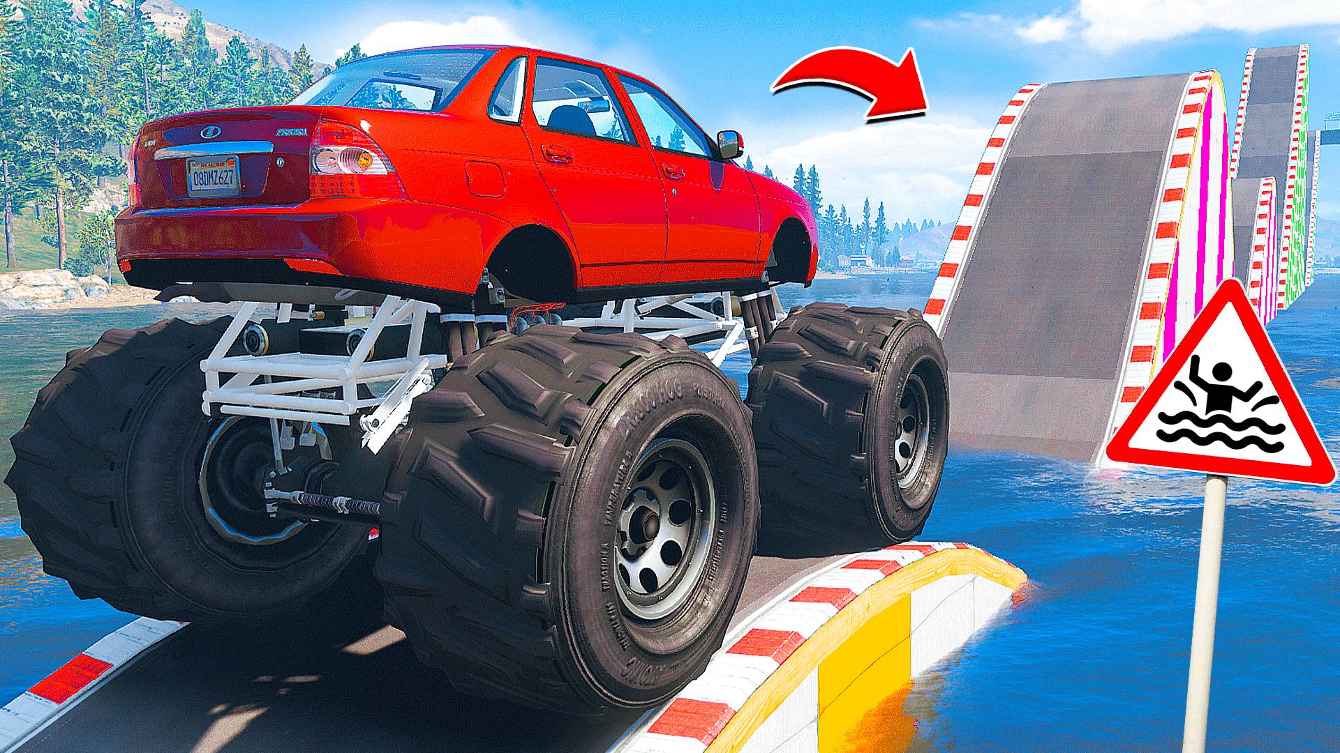 ПРОЕХАЛ ВОДНЫЕ ТРАМПЛИНЫ на ГИГАНТСКОЙ ЛАДЕ ПРИОРЕ в ГТА 5 МОДЫ - ЭКСПЕРИМЕНТЫ в GTA 5 MODS