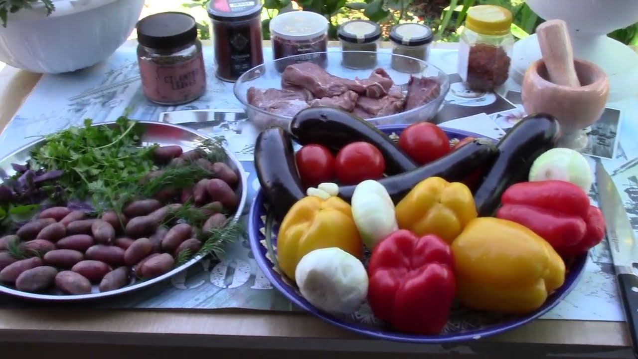 Яндекс Дзен - https://zen.yandex.ru/id/620b3fd678237536da3a759a RuTube - https://rutube.ru/channel/24746918/ В контакте https://vk.com/serdukov1974 Рецепт: Говядина - 1 кг. Баклажаны - 4 шт. Помидоры - 4 шт. Болгарский перец - 4 шт. Лук - 4 шт. Чеснок 4-5 зубчиков Растительной масло(оливковое, сливочное) - 2/3 стакана Томатная паста 2-4 столовой ложки Аджика -1-2 чайных ложки Картошка - 300-500 грамм Хмели-сунели -1 чайная ложка Уцхо-сунели - 1 чайная ложка Смесь 5 перцев - 1 чайная ложка Имеретинский шафран -1 чайная ложка Кориандр молотый - 1/2 чайной ложки Кинза сушенная - 1 чайная ложка Зелень: кинза, базилик, петрушка