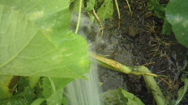 Полив и обзор (с размыванием) дополнительного укоренения тыквы сорта "Богатырская сила"