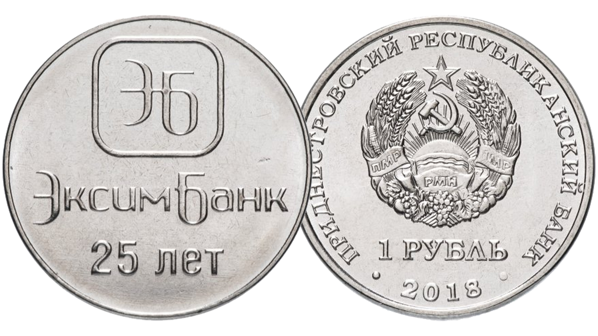 Монета 1 рубль Приднестровья 25 лет ЭксимБанку.
