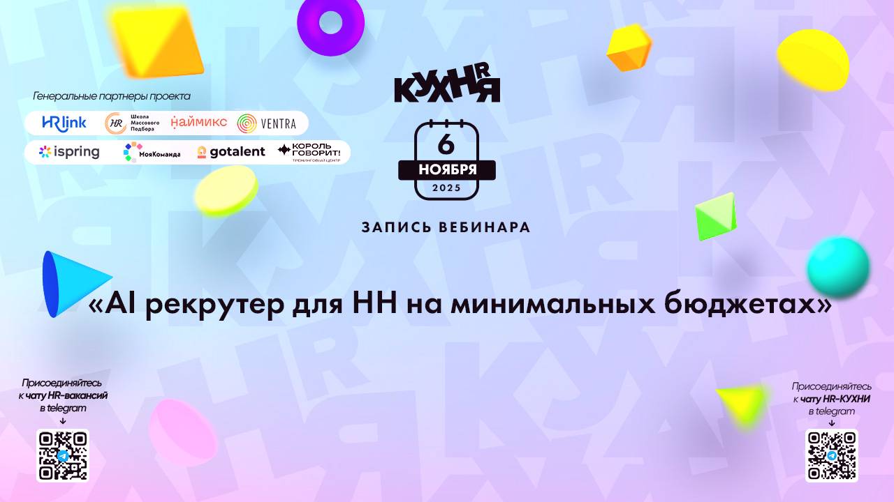 Присоединяйтесь к чатам и каналам HR-КУХНИ в телеграм: - Основной чат HR-КУХНИ в телеграм - https://t.me/+tYgAH0PgPQVkOWIy - Канал HR вакансий в телеграм - https://t.me/+CMNAN2u1hjo3M2Ri - Канал HR-EVENTS в телеграм - https://t.me/hr_kitchen - Канал HR JOURNAL в телеграм - https://t.me/hrkitchenjournal Полезные ссылки: - Каталог HR решений - https://hrkitchen.ru/exhibition - График конференций, бесплатных вебинаров, а также бесплатные курсы – https://hrkitchen.ru/ - Стать спикером HR-КУХНИ - https://hrkitchen.ru/speakers - Подписаться на полезную e-mail рассылку от HR-КУХНИ (новости, гайды, чек-листы, подарки от партнеров) - https://hrkitchen.ru/subscribe