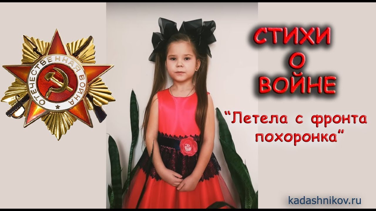 Конкурс чтецов "Дети читают стихи" стих о войне. "Летела с фронта похоронка" автор Степан Кадашников, читает Полина Клюева, 5 лет. Рощинский, Самарская область. Актёры, певцы, дети и школьники читают мои стихи на сайте: http://kadashnikov.ru "Летела с фронта похоронка" Летела с фронта похоронка На молодого пацана, А он живой лежал в воронке… Ах, как безжалостна война! И проходили мимо танки… Чужая речь… а он лежал, И вспоминал сестру и мамку, Лежал и тихо умирал. Пробита грудь была навылет, И кровь стекала в черный снег, А он глазами голубыми Встречал последний свой рассвет. Нет, он не плакал, улыбался, И вспоминал родимый дом, И пересилив боль поднялся, И, автомат подняв с трудом, Он в перекошенные лица Горячий выплеснул свинец, Приблизив этим на минуту Войны, безжалостной, конец. Летела с фронта похоронка, Уже стучался почтальон, Солдат, глаза закрыв в воронке, На миг опередил её. ©Степан Кадашников Если Вы любите декламировать стихи и Вам понравилось одно из стихотворений С. Кадашникова, запишите свое видео и отправьте нам.? ? Лучшие видео будут размещены в инстаграмме, вконтакте, или на сайте: http://kadashnikov.ru Посмотреть видео других выступлений школьников, актеров, телеведущих, детей - можно на канале YouTube : https://www.youtube.com/kadashnikov Инстаграмм https://www.instagram.com/stepankadashnikov Поэт Степан Кадашников биография стихи о войне на День Победы. Начало войны 22 июня, 1941 года день памяти. Стихи о войне до слёз стихотворение "Летела с фронта похоронка" выступление посвяфщенное ветеранам войны. Стих на конкурс чтецов, декламации, для детей. Песни про войну до слез . Конкурс Лабиринт.Ру, дети и школьники читают стихотворения про войну на День Победы 9 мая. Ветер войны, праздник 23 февраля. День защитника Отечества, Строчки Твардовского, о войне и победе, Неизвестные поэты, короткие. Строки о войне и про войну на 9 мая. "Не забывайте о войне ", "Прерванный бег", "Летела с фронта похоронка". О дне начала ВОВ 22 июня стих - "День памяти и скорби". Про Великую Отечественную Войну 1941-1945 г. о любви, о природе для детей. Поэты для школьников, для конкурса чтецов на День Победы 9 мая 1945 года. О войне читают дети и школьники. #конкурсчтецов #стихиовойне #детскиестихи #деньпобеды #стихипровойну #конкурсчтецов #конкурсстихов #стихидлядетей #бессмерныйполк #детичитаютстихи #степанкадашников Актёры, певцы, дети и школьники читают мои стихи на сайте: http://kadashnikov.ru