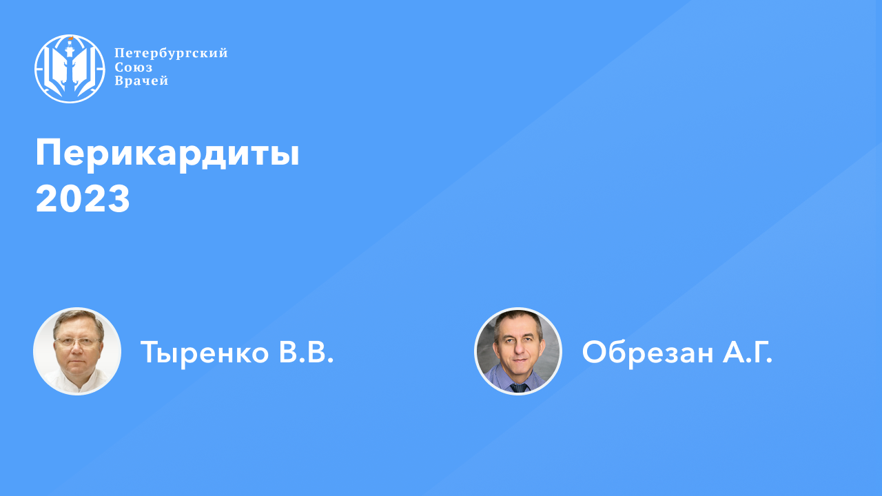 Видеозапись онлайн-семинара «Перикардиты 2023» Сайт: www.spb.doctor Дата проведения: 22.05.2023, 20:00 Страница мероприятия: https://spb.doctor/i/23052220/ Программа: 00:02:30 Перикардиты 2023. Обрезан Андрей Григорьевич 01:07:47 Патогенетический подход к ведению пациентов с ИРП. Тыренко Вадим Витальевич 01:40:11 Ответы на вопросы О семинаре: В рамках онлайн-семинара будут обсуждаться этиология, эпидемиология и классификация заболеваний перикарда, клинические проявления перикардиальных синдромов. Специалистам будет представлен план обследования при заболеваниях перикарда различной этиологии, принципы лечения инфекционных и неинфекционных перикардитов.