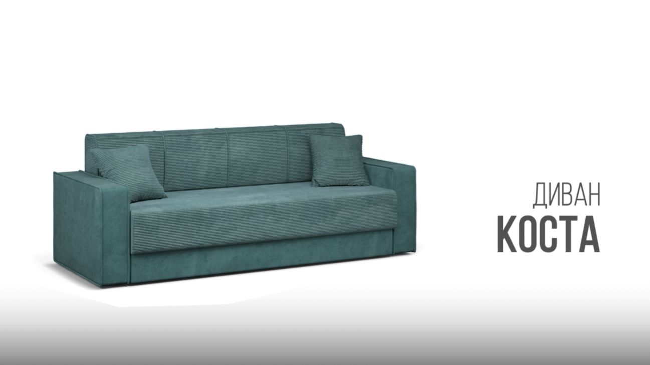 "Диван «Коста» — это воплощение уюта в стиле минимализм. Лаконичный силуэт без приспинных подушек создаёт ощущение простора и лёгкости, а спинка с элегантными вертикальными защипами и декоративный кант по периметру придаёт модели утончённый вид. В комплект входят две декоративные подушки, подчёркивающие общий стиль дивана. Надёжный механизм трансформации «еврокнижка» с лёгкостью превращает его в полноценное спальное место. Металлические направляющие с закругленным окончанием надежно фиксирует посадочную часть в собранном и разложенном виде, делают раскладку легкой. Независимый пружинный блок в наполнении обеспечивает высокий уровень комфорта и оптимальную поддержку во время сна. Просторный бельевой ящик удобно разместит постельные принадлежности или сезонную одежду."