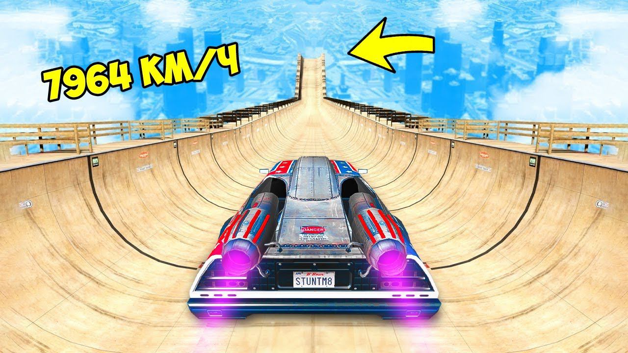 СПУСК БЕЗ ТОРМОЗОВ НА КАСКАДЁРСКОЙ МАШИНЕ ПО ТРАМПЛИНУ ГТА 5 МОДЫ РАЙЛЮХА