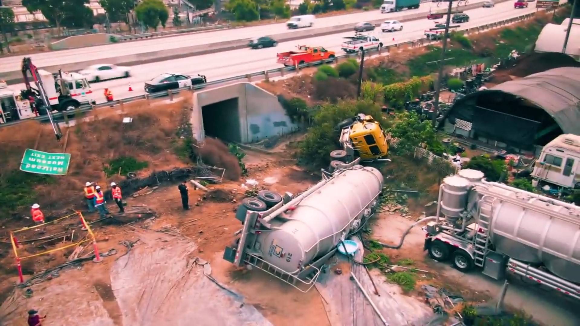 Трак вылетел с автострады, водитель чудом уцелел.