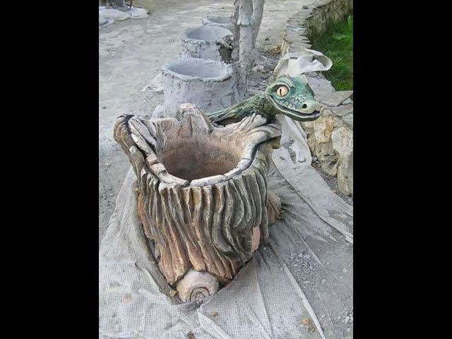 изготовление цветочника из бетона в виде пенька и гриба..мастер Оксанка..