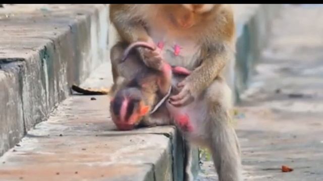 Макака приводит в порядок внешний вид новорождённого ... 1000021870.mp4