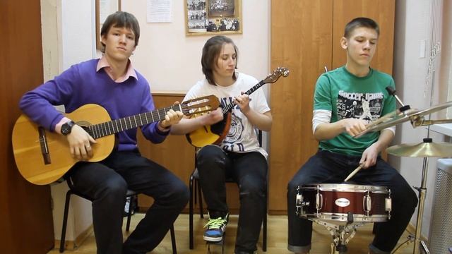 Исполняют: Владимир Крамаренко (гитара) Софья Калинина (домра) Максим Соин (Ударные)