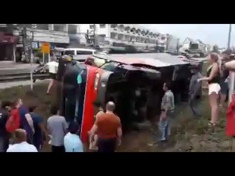 Автобус с туристами перевернулся в Паттайе