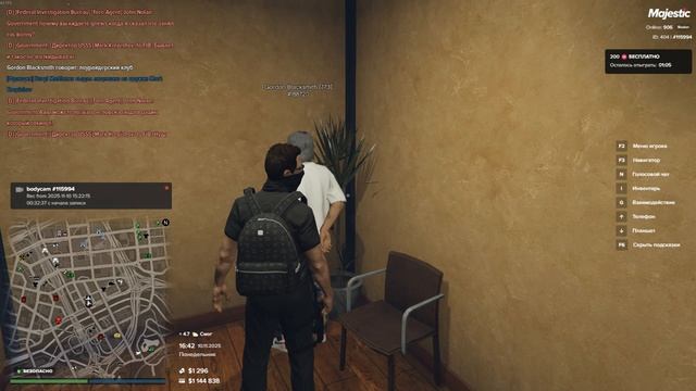 0:00-Увидел подозрительную машину которая игнорировала требования сотрудника ПД и решил помочь ему остановить её 0:25-Машина остановилась и я направил оружие на гражданина потребовав покинуть тс,но в меня стал стрелять неизвестный 0:33-Начал перестрелку с гражданином ,но водитель авто вышел и выпустил мне в спину 3 пули с расстояния 5-8 метров,после чего я отключился 1:51-Сотрудник ПД оказал детективу первую медицинскую помощь 2:09-Детектив задержал гражданина который который открыл огонь 2:20-Детектив показал удостоверение задержанному 2:35-Детектив начал читать Миранду задержанному дважды 4:38-Детектив приехал в полицейский департамент и завёл задержанного в допросную 5:00-Детектив становил личность задержанного 6:10-Детектив прочитал Миранда перед допросом 6:25-Детектив задал вопрос "об признании вины" 6:38-Задержанный ответил на вопрос "об признании вины" 8:03-Детектив задал вопрос "про организацию " 8:10-Задержанный ответил на вопрос "про организацию " 10:44-Детектив достал карту и положил на стол 11:35-Задержанный показал место дислокации его организации 12:00-Детектив задал вопрос "о месте дислокации и обозначения на карте его организации" 13:45-Задержанный ответил на вопрос "о месте дислокации и обозначения на карте его организации" 13:55-Детектив достал полиграф 15:17-Детектив задал вопрос задержанному 16:17-Задержанный ответил на вопрос 17:52-Детектив арестовал задержанного 18:05-Детектив скрытно завершил запись боди- камеры,вытащил флеш- накопитель и спрятал его в рюкзак