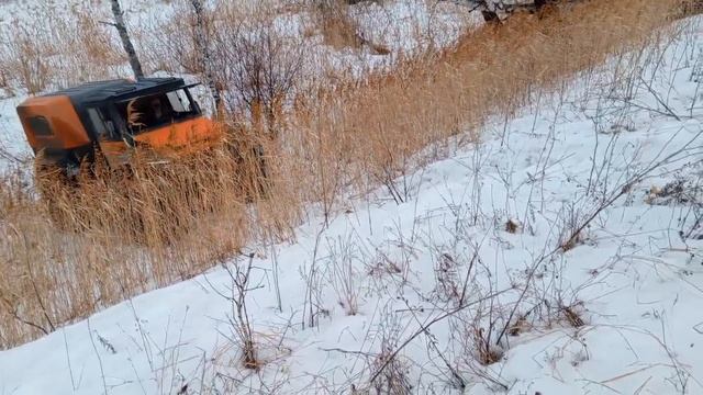 подъём в крутую горку на вездеходе. выход на высокий берег лесной речки