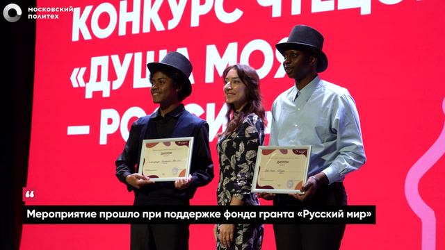 🌏 В Московском Политехе прошёл III конкурс чтецов для иностранных граждан «Душа моя - Россия» Участниками конкурса стали 50 иностранных студента. Также были организованы следующие мероприятия: 🔹 вечер знакомств 🔹 речная прогулка 🔹 семинар и квиз «Русские поэты и писатели, проникающие в душу» 🔹 экскурсия в государственный музей А. С. Пушкина и в дом М. Ю. Лермонтова Официальный сайт: mospolytech.ru/ Официальные социальные сети Московского Политеха: ВКонтакте: vk.com/moscowpolytech Telegram: t.me/mospolytech Чат в Telegram: t.me/mospolychat YouTube: youtube.com/channel/UCJMY2ilUHti99R6ii2PIIYA Яндекс.Дзен: dzen.ru/mospolytech #МосковскийПолитех