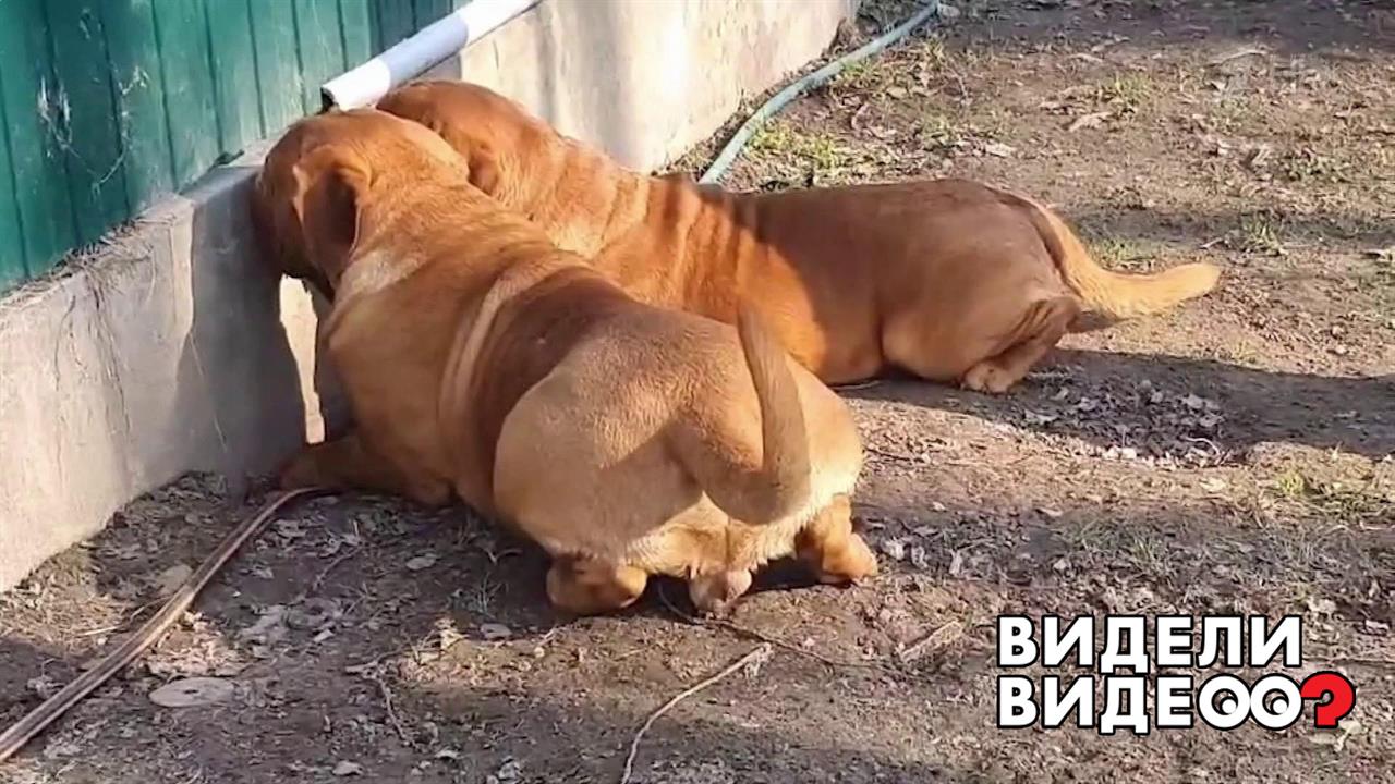 Номинация «Как кошка с собакой» — бордоские доги наблюдают за котами через забор.