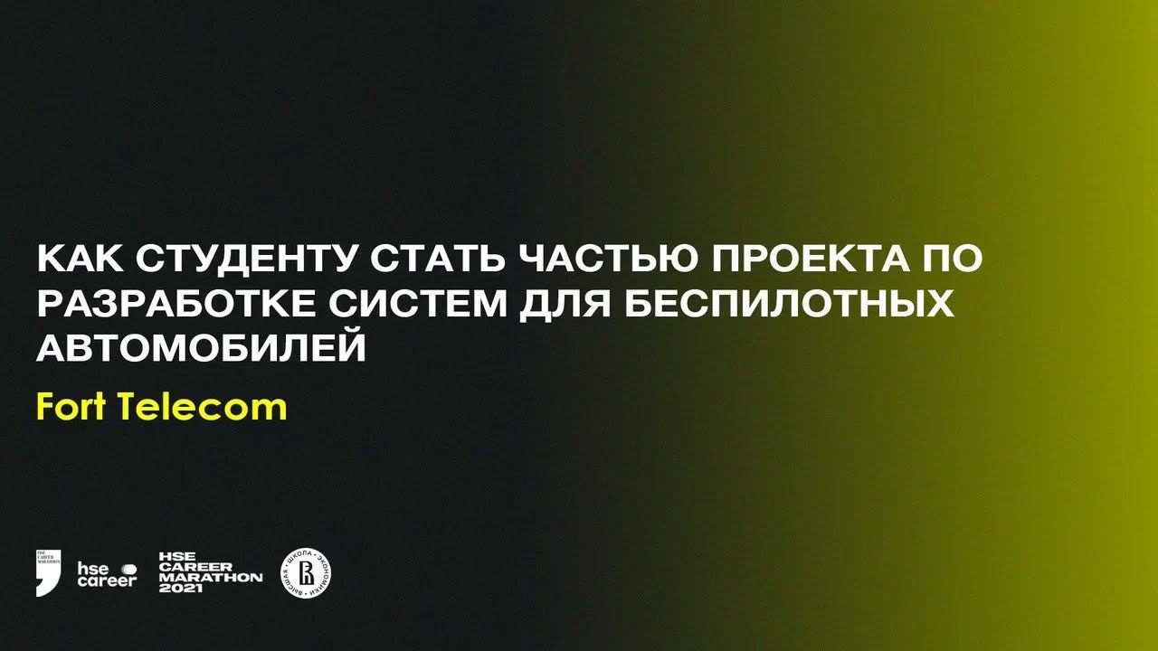 Мастер-класс компании Fort Telecom. Директор по развитию Fort Telecom Владимир Макаренко расскажет о том, что такое V2X технологии, как пройти стажировку или практику в отделе разработки систем для беспилотных автомобилей и присоединиться к Fort Telecom team.