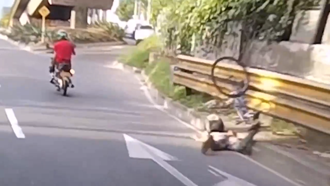 Велосипедист засмотрелся на проезжающий мотоциклистов и врезался в забор. #велосипедисты #мотоциклисты #падения #фейл #прикол