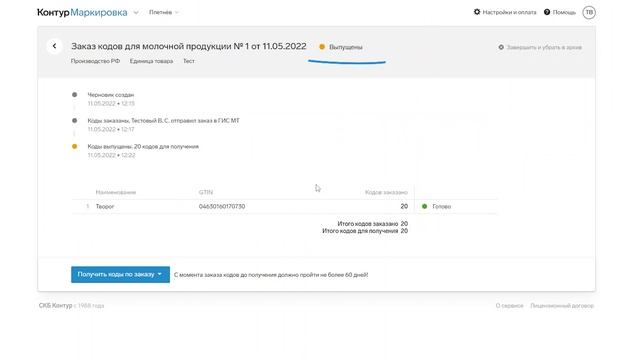 Заказ кодов маркировки в веб-сервисе Контур.Маркировка.