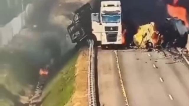 Два грузовика и легковушка загорелись после столкновения на М-11 в Тверской области.