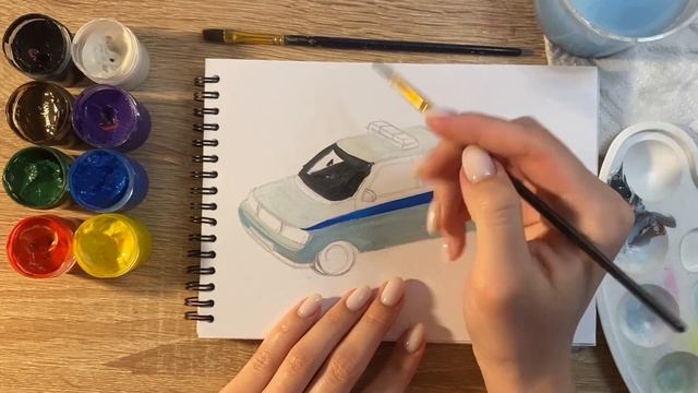 Как нарисовать машину ДПС карандашом и гуашью для детей | Рисунок поэтапно для срисовки