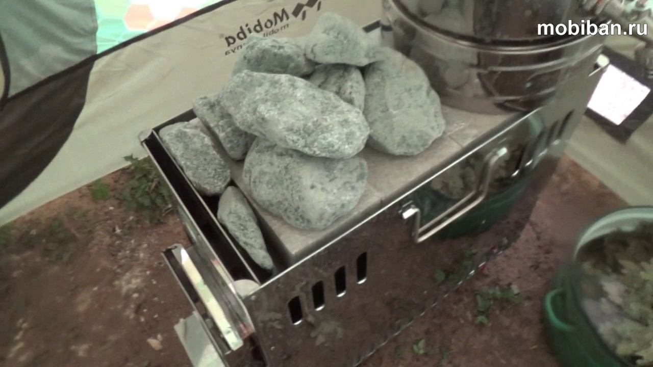 Мобиба МБ-10А в расцветке "Сотовый камуфляж" установлена на участке у дома. В палатке установлена печь Медиана с парогенератором "Парофон-3". Каменная закладка представляет собой 3 кирпича из талькохлорита и немного обвалованного габбро-диабаза. Отличный комплект для дачи! Мобиба МБ-10А: http://mobiban.ru/mb-10.php Печь Медиана: http://mobiban.ru/pech'_mediana.php Парогенератор Парофон-3: http://mobiban.ru/parofon-3.php Камни: http://mobiban.ru/kamni.php