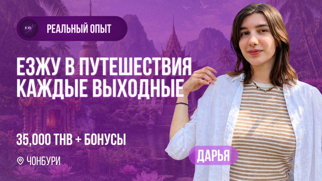 Дарья — по образованию режиссёр анимации, у которой до переезда был лишь небольшой опыт работы с детьми в лагере. Вдохновившись тайской музыкой и кино, она решилась кардинально изменить жизнь и переехать в Таиланд, где смогла начать карьеру учителя английского языка практически с нуля. В этом интервью Дарья рассказывает, как проходила подготовка к трудоустройству, почему выбрала город Чонбури вместо Бангкока, сколько на самом деле работает в неделю, как быстро адаптировалась в новой стране и сколько стоит жизнь рядом со школой. Также она делится впечатлениями о коллективе, русскоязычном комьюнити, насыщенной культурной жизни с концертами и фестивалями и своим личным опытом жизни в Таиланде. Видео будет особенно полезно тем, кто мечтает о переезде в Азию и работе учителем за границей 🌏✈️ 💥 Чтобы оценить свои шансы на трудоустройство во Вьетнам, проконсультироваться и узнать об условиях сотрудничества, пожалуйста, заполните эту форму на сайте🙏: https://www.jobiks.ru/ Всей информацией о работе в Таиланде и Вьетнаме, открытыми вакансиями мы делимся в наших соц. сетях: ✨ Наш сайт: https://www.jobiks.ru/ 🟡 Instagram: https://www.instagram.com/jobiksss/ 🔵 Telegram: https://t.me/jobiksss 💙 VK: https://vk.com/jobiksss ❤️ Интервью с нашими учителями: https://www.youtube.com/playlist?list=PL7fbKv3YbUs7GWAXwT1wirdHCsdo8BuUb 00:00 Введение 01:11 О себе и опыте работы 02:52 Как решились на переезд? 05:02 Почему доверились компании Jobiks? 06:16 Про запрос 07:46 Про сотрудничество с компанией Jobiks 09:16 Про условия 11:02 Как проходит рабочий день? 13:48 Про студентов 14:48 Каково быть учителем в Таиланде? 19:59 Про коллектив 21:11 Про первые впечатления о Таиланде 22:43 Про жильё 23:55 Про траты 25:06 О жизни в Таиланде 26:25 Про досуг и Путешествия 33:18 Советы для новых учителей 36:00 Заключение 😱 Дешёвые авиабилеты мы покупаем тут: Aviasales http://www.aviasales.ru/?marker=154846 #вьетнам #учительанглийского #работазаграницей Учитель Английского во вьетнаме,Работа Учителем Английского,Учитель Английского В Азии,Учитель В Азии,Работа За Границей,трудоустройство во вьетнаме,учитель в Таиланде,учитель Вьетнам,работа со знанием анлийского,работа учителем английского во вьетнаме,работа учителем за рубежом,jobiks,работа учителем в таиланде,гос школа таиланд,таиланд учитель,учитель английского в таиланде,работа в школе в таиланде,работа учителем у моря в таиланде,жизнь учителя в таиланде