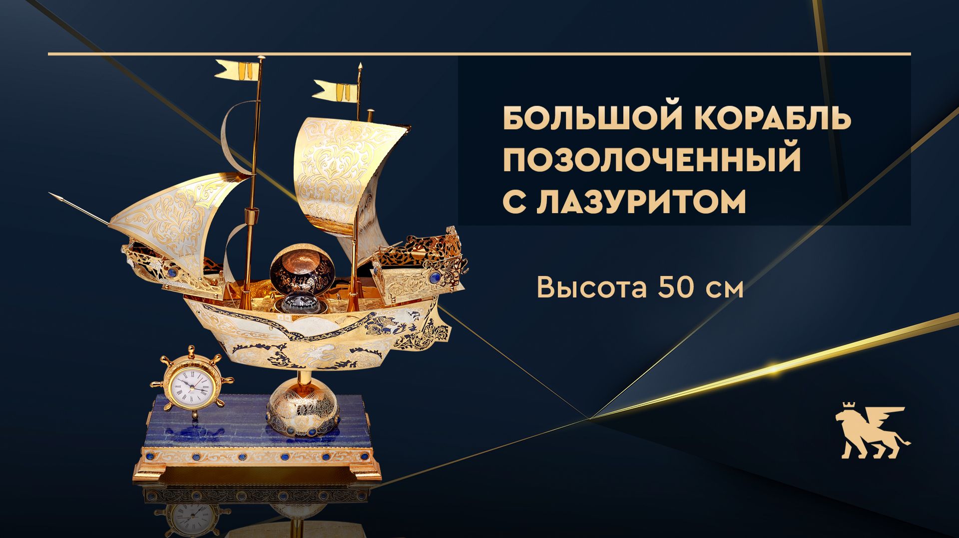 Большой интерьерный корабль с лазуритом