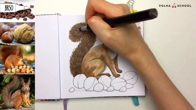 Использовались материалы: - скетчбук https://www.volhasakovich.com/marker-sketchbook - чёрный линер Sketchmarker Liner 0,2; - маркеры Sketchmarker - BR24 (Flesh Color), BR62 (Mushroom), BR52 (Beaver), BR50 (Dark Brown), O43 (Honey), R43 (Cyclamen), GG1 (Green Gray 1), GG3 (Green Gray 3), SG11 (Simple Gray11), 0 (Blender); - карандаш Faber-Castell Polychromos (белый); - белая гелевая ручка GELLY ROLL Sakura. Ссылки на фото референсы: - https://i1.wallbox.ru/wallpapers/main2/201726/zivotnoe-belocka.jpg - https://nashaigrushka.ru/upload/catalog/411084/411084.jpg - https://elithairtransplant.com/italy/wp-content/uploads/2018/01/walnut-3036110_1920.jpg - https://cdn8.bigcommerce.com/s-bbbdf/images/stencil/1280x1280/products/733/6826/Cedar-Nuts-Parrot-Treats-with-Cone__12303.1504097354.jpg?c=2&imbypass=on При публикации работы по этому уроку в Инстаграме, пожалуйста, используйте хэштег #v0lha_online ═══════════════════════════ МОИ ОНЛАЙН-КУРСЫ ПО РИСОВАНИЮ https://www.volhasakovich.com/online Скидка 20% на любой курс или +2 дополнительных месяца к подписке по промокоду - 20YOUTUBE20 МОИ СКЕТЧБУКИ ДЛЯ РИСОВАНИЯ МАРКЕРАМИ https://www.volhasakovich.com/marker-sketchbook https://bit.ly/v0lha-sketchbook МОЯ РАСКРАСКА https://www.volhasakovich.com/coloring-book ═══════════════════════════ Мой инстаграм - https://www.instagram.com/v0lha/ Где я училась рисовать маркерами: https://kalachevaschool.ru/courses/sketchbook?gcpc=4e9b0 https://kalachevaschool.ru/courses?gcpc=4e9b0 http://kalachevaschool.ru/pl/39403?gcpc=4e9b0 #как_рисовать_маркерами #рисование_маркерами #уроки_рисования_маркерами #уроки_рисования_для_новичков