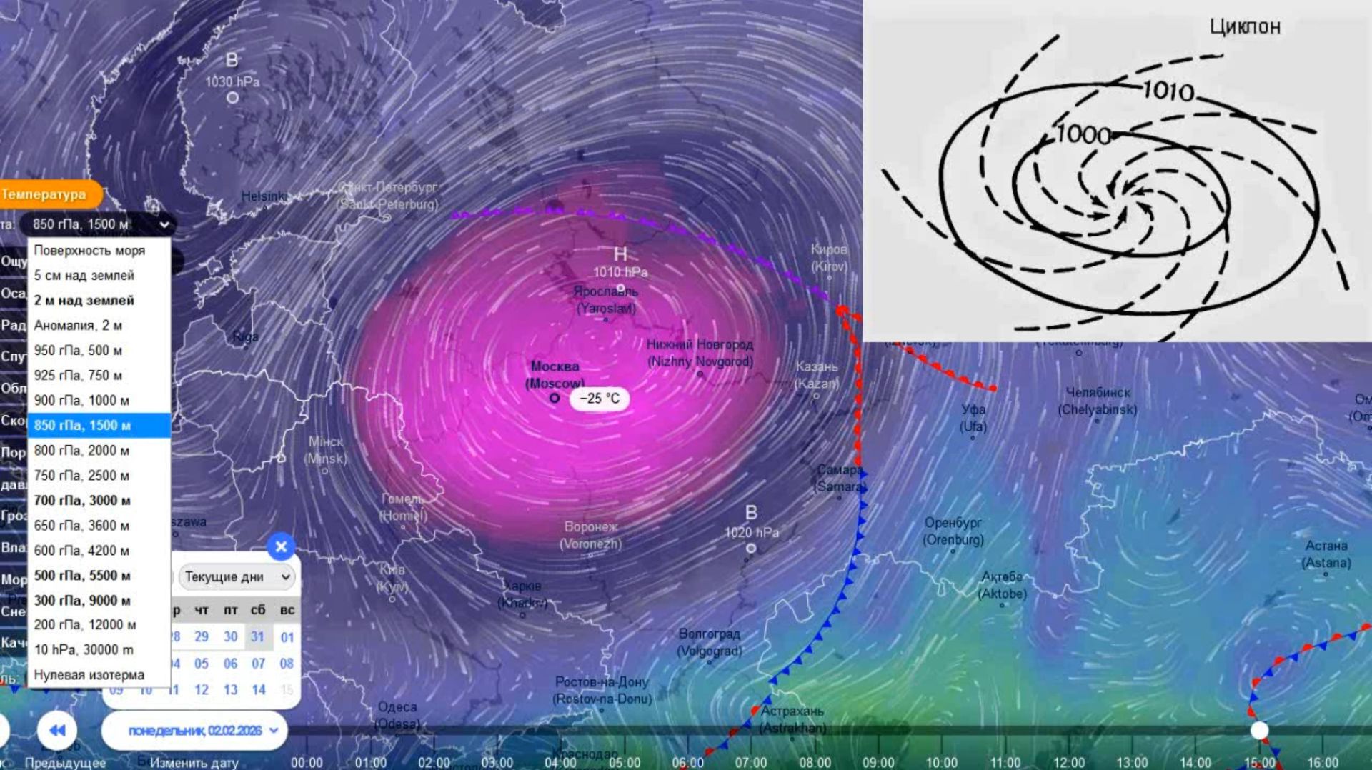 В начале Февраля южный циклон над ЕТР вызовет опускание тропосферного холода