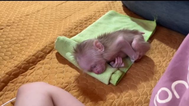 Обычно в первое время маленькая обезьянка спит...