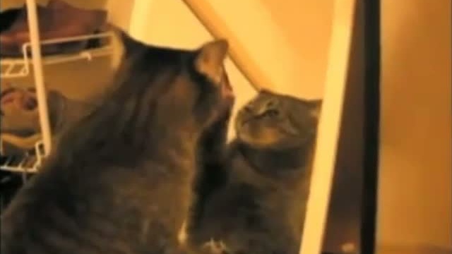 Кошка играет со своим отражением