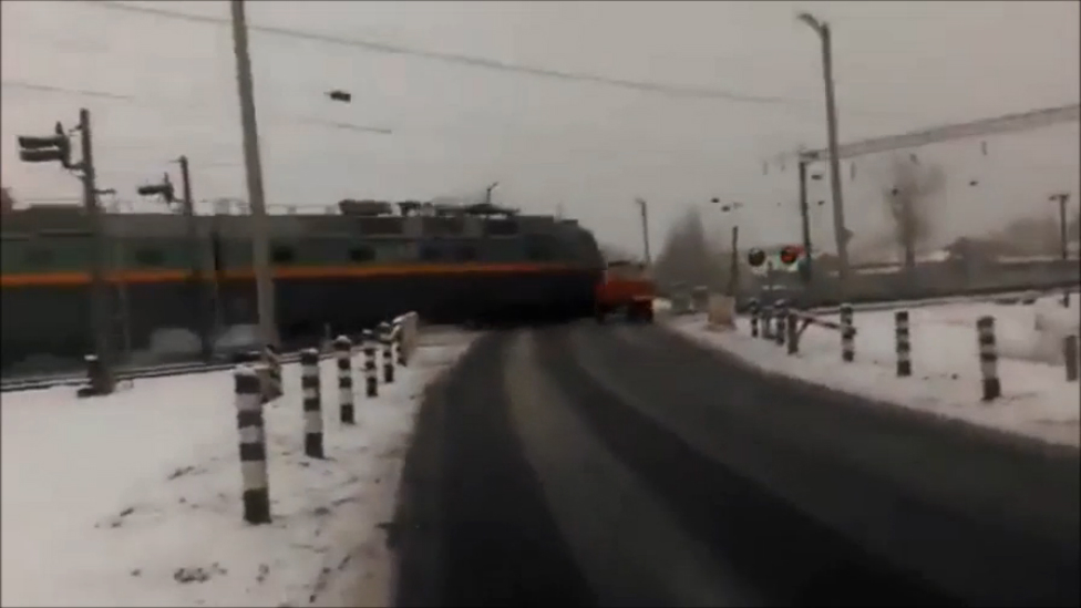 Беларусь. Поезд сбил трактор (06.01.2016 г.)