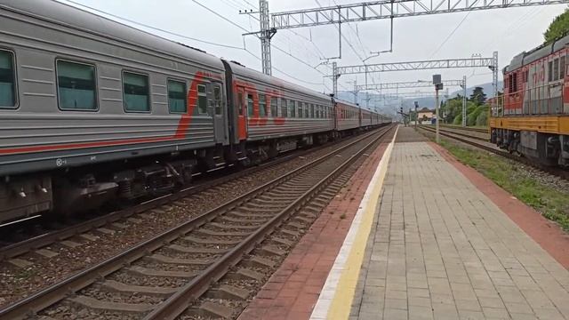 Электровоз 2ЭС4К с пассажирским поездом Печора - Адлер | РЖД | Сочи | Железная дорога