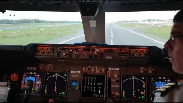 Вид из кабины пилота самолета Boeing 747 во время взлета из Амстердама Нидерланды Европа