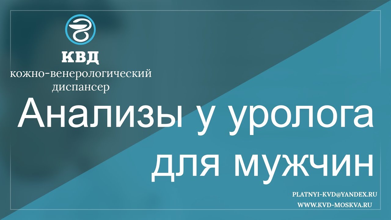 Заболевания мужской половой сферы, их диагностика, профилактика и лечение являются предметом изучения андрологии. Все, кто приходит с какой-либо проблемой в это сфере, обязательно должны сдать анализы у уролога для мужчин. Подробнее - https://kvd-moskva.ru/muzhskoe-obsledovanie/ Для подробной консультации по этому вопросу, обращайтесь в платный центр КВД-Москва. Наши телефоны: 8 (495) 642-30-37, 8 (495) 532-66-57 Наш e-mail: platnyi-kvd@yandex.ru Наш сайт: http://kvd-moskva.ru