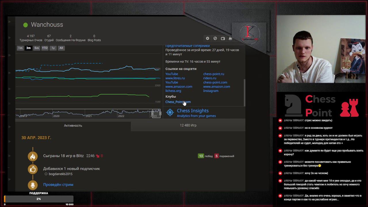 Поддержать проект: https://www.donationalerts.com/r/chess_point_com https://boosty.to/chess_point_com/donate Различные турниры и игры на lichess.org играем, играем против GM, IM, FM, CM, провожу розыгрыши и провожу бесплатные турниры на деньги! Залетай на канал Ночные игры, после трудного дня) Для тех, кто очень любит шахматы Не забудьте поддержать проект "ЛАЙКОМ" и "Подписаться" Все ссылки в одном месте: https://linktr.ee/chesspoint