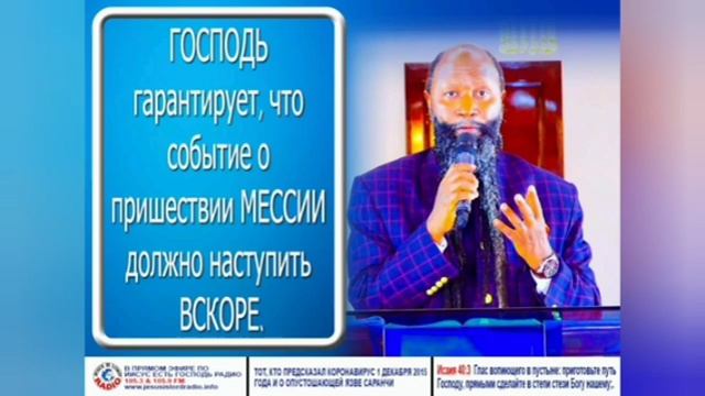 ОБЕЩАННЫЙ БОЖИЙ ПРОРОК ПОСЛЕДНЕГО ВРЕМЕНИ ДР. ДАВИД ОВУОР -------------------------------------- ГОСПОДЬ ПОСЛАЛ СВОИХ ВЕЛИКИХ ПРОРОКОВ ГОСПОДНИХ К ЭТОМУ МИРУ Чтобы нам принести правду, истинное определение и значение благодати, чтобы пробудить, восстановить и поднять церковь от большого падения , которое вошло в церковь. И чтобы нас вразумить, что время истекло и мы должны приготовиться в святости и праведности, потому что МЕССИЯ грядет! ГОСПОДЬ ГРЯДЁТ ЗА СВОЕЙ ЦЕРКОВЬЮ. ГОСПОДЬ ГОТОВИТ ЦЕРКОВЬ ЧЕРЕЗ ПРОРОКОВ БОЖИИХ К ВОСХИЩЕНИЮ КОТОРОЕ СКОРО, СКОРО, ОЧЕНЬ СКОРО ПРОИЗОЙДЕТ! • Старайтесь иметь мир со всеми и святость, без которой никто не увидит Господа. Евреям, 12:14 • И не войдет в него ничто нечистое и никто преданный мерзости и лжи, а только те, которые написаны у Агнца в книге жизни. Откр 21:27 • Побеждающий облечется в белые одежды; и не изглажу имени его из книги жизни, и исповедаю имя его пред Отцем Моим и пред Ангелами Его. Откровение, 3:5 • И кто не был записан в книге жизни, тот был брошен в озеро огненное. Откр 20:15