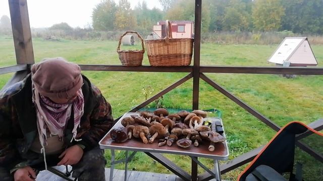 Мечтал о грибах-получил. Они пришли ко мне на участок. #новгородскаяобласть #пениептиц #урочище #новыебуреги #осень #утро #солнце #сад #деревья #буреги #селищи #грибы #бытовка #тачка #огород #лес