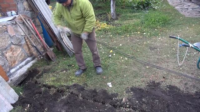 Стены кессон готовы. Необходима прокладка коммуникаций. Применяю самодельную копалку для траншеи под трубу. Далее опалубка для верхней плиты из тех же материалов, что и для стен. Арматура (8 мм), из неё свариваю решетку. Для отверстия под люк использую обрезок 200-сот литровой бочки. Походит идеально. Заливка бетоном прошла относительно удачно. Но получился перебор по толщине верхней плиты. Нужно всё углубить. Но об этом в следующей серии.