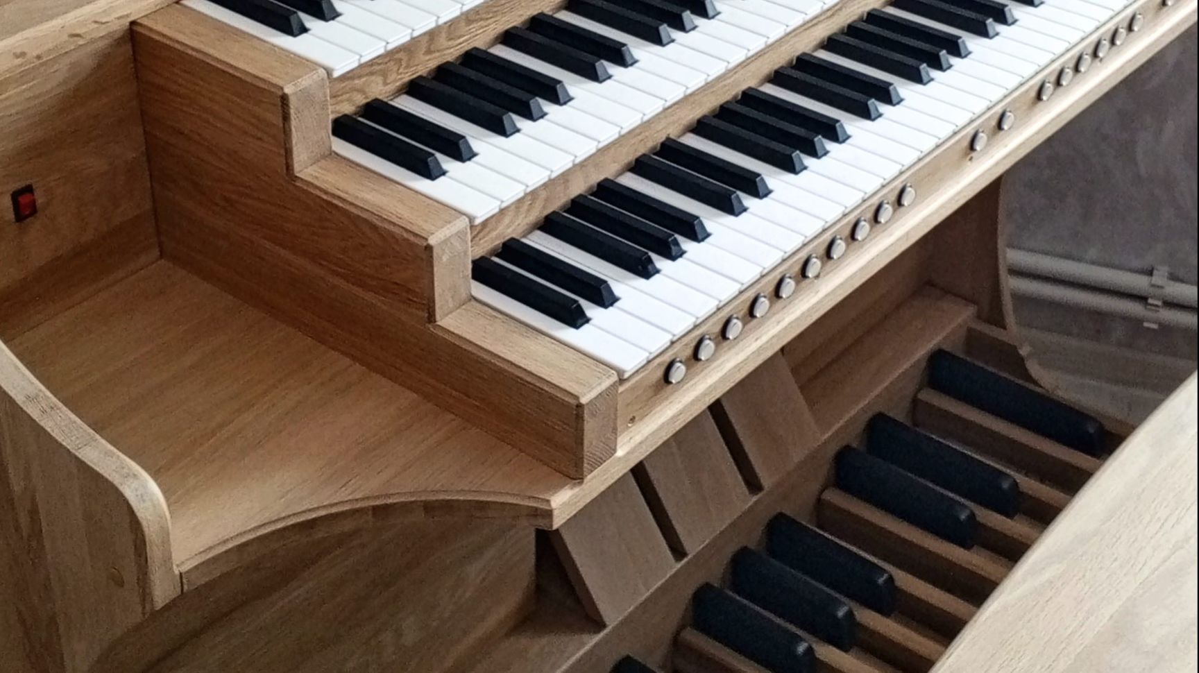 Шпильтиш три мануала, три швеллера, педаль 32 клавииши, дуб.